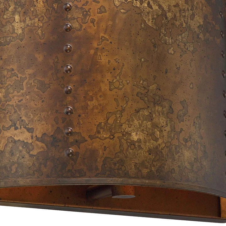 Der halbzylindrische Lampenschirm und die Nagelkopfdetails erzeugen einen authentischen rustikalen Look, der wunderbar zu modernen oder Vintage-Inneneinrichtungen passt.